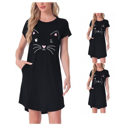 INSPIRE CHIC Women's 2 Pcs Cats Printing Pajamas Cute Printed Sleep Dress Short Sleeve Nightgowns - 1 of 4