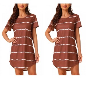 INSPIRE CHIC Women's 2 Pcs Round-Neck Curved-Hem Short-Sleeve Nightshirt Sleep Gown - 1 of 4