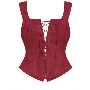INSPIRE CHIC Women's Faux Suede Vintage Sleeveless Lace Up Zipper Decor Waistcoat Vests - 1 of 4