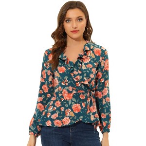 INSPIRE CHIC Women's Floral Print V Neck Tie Waist Ruffle Neck Chiffon Wrap Shirt - 2 of 4INSPIRE CHIC Women's Floral Print V Neck Tie Waist Ruffle Neck Chiffon Wrap Shirt - 3 of 4INSPIRE CHIC Women's Floral Print V Neck Tie Waist Ruffle Neck Chiffon Wrap Shirt - 4 of 4