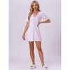 Upgrade your nighttime attire with this women's soft v-neck nightgown. Indulge in comfort and style with this women's nightgown sleep dress featuring a soft V-neck and short sleeves. This loungewear piece offers a cozy feel and a relaxed fit for ease of movement. The classic design of the V-neck short-sleeved nightgown exudes elegance and simplicity, perfect for unwinding at home or running errands. Made from breathable fabric, this versatile piece is suitable for year-round wear. Elevate your sleepwear collection with this chic and comfortable night dress.