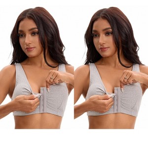 INSPIRE CHIC Women's Front Closure Adjustable Strap Wirefree Full Coverage Soft Workout Bras 2 Packs