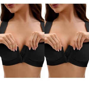 INSPIRE CHIC Women's Front Closure Push Up Wirefree Wide Straps U Back Tank Bras 2 Packs