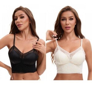 INSPIRE CHIC Women's Lace Wave Trim Cami V-Neck Vest Adjustable Spaghetti Strap Built-in Bra Cropped Camisoles 2 Packs