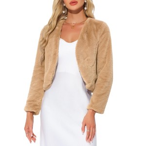 INSPIRE CHIC Women's Long Sleeve Open Front Cropped Winter Faux Fur Jacket - 1 of 4