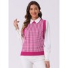 INSPIRE CHIC Women's Round Neck Sleeveless Houndstooth Plaid Knitted Sweater Vest - 1 of 4