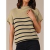 INSPIRE CHIC Women's Sleeveless Mock Neck Striped Cap Sleeve Knit Pullover Tank Tops - 1 of 4