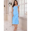 This stunning sleeveless dress is perfect for semi-formal or formal events such as cocktail parties, weddings, and proms. The ruffled detail and slit front add a charming touch, while the square neck and slim fit create a flattering silhouette. Made from 95% Polyester and 5% Spandex, the fabric offers a slight stretch for comfort. Pair it with high heels and accessories for a complete glamorous look. Please refer to the size chart for accurate sizing before ordering.