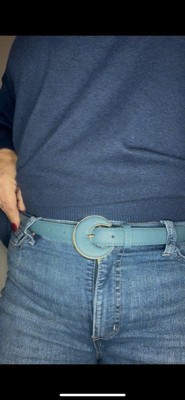 INSPIRE CHIC Womens 0.9" Width Textured Fashion Faux Leather Waistband with Gold Buckle Belts 1Pc Bondi Blue 114x2.4cm/44.9x0.9"(LxW)