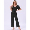 INSPIRE CHIC Womens Lounge Casual Ribbed Knit Short Sleeve Drawstring Pants Pajama Set with Pockets - 1 of 4