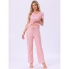 INSPIRE CHIC Womens Short Sleeve V-neck Top Drawstring Pants Pajama Sets with Pockets - 1 of 4