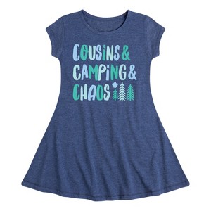 Instant Message - Cousins & Camping & Chaos - Toddler & Youth Girls Fit & Flare Dress - Instant Message is an online specialty fashion retailer for everything from funny to inspiring printed apparel. We offer a range of garments from long sleeve and relaxed fit t-shirts, to lightweight french-terry long sleeve shirts, hoodies and graphic print pullovers. Our products feature fun and trendy graphics that are perfect for any occasion and also make great gifts.