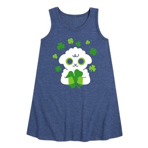 Girls' - Instant Message - St. Patrick's Day Sheep Holding a Shamrock Graphic Sleeveless Aline Dress - 1 of 4