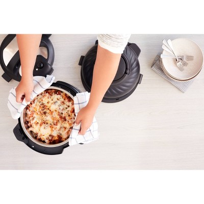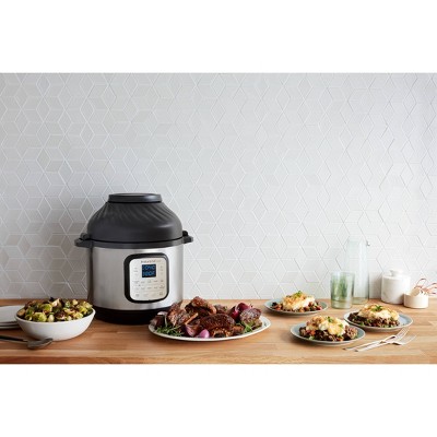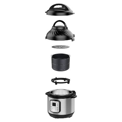 New 11-in-1 multi-use pressure cooker with detachable Air Fryer lid quickly pressure cooks, sautés, steams, slow cooks, cooks sous vide, warms, roasts, bakes, broils and dehydrates11 Smart Programs put cooking on autopilot with delicious results: The pressure cooker lid offers 6 wet cooking functions: use it to quickly pressure cook, sauté, steam, slow cook, sous vide and warm. The Air Fryer lid offers 5 dry cooking functions: use it to quickly air fry, roast, bake, broil and dehydrate.Innovative EvenCrisp Technology™ ensures tender juicy meals with a crisp, golden finish — every time10+ built-in safety features, including Overheat Protection™, Safety Lock and more, ensure safe pressure cooking. Easy-Seal Pressure Cooking Lid automatically sets to seal when lockedEasy to use, easy to clean and easy to store. 8-quart capacity makes cooking family-size meals a breeze. Accessories include a multi-level air fryer basket and a dehydrating and broiling tray designed to ensure optimal results time after time.