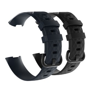 Insten 2-Pack Soft TPU Rubber Replacement Band For Fitbit Charge 4 & Charge 3, Black+Navy