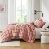 Transform your bedroom into a cozy dream with the Intelligent Design Dream Puff Comforter Mini Set. The 3D puff stitching creates a beautiful, airy cloud-like look, and is overfilled for an extra-lofty look and feel. The crinkled quilted design ensures an even distribution of the fill for an optimal sleeping experience. The set conveniently includes a comforter and matching shams, and is machine washable for easy care. If there is no free movement in washer/dryer, use large capacity commercial washer/dryer.