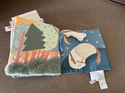 This is such a cute baby book. The pages make the wrinkling sound that babies love and keeps them engaged. The pages are interactive, my niece loved this little book so much. She also enjoyed playing with the cute little unicorn attached.