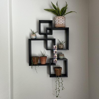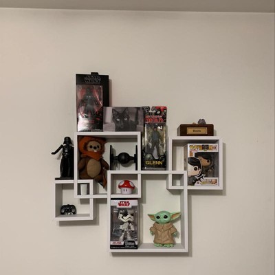 Danya B. 25.5" x 17.75" Intersecting Cube Wall Shelf White: Laminated MDF, No Assembly, 4-Tier Storage