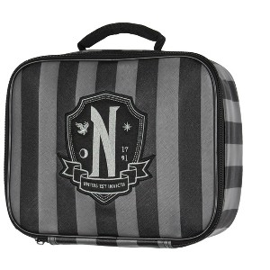 Intimo Wednesday Addams TV Show Striped Nevermore Academy Insulated Lunch Box Bag Tote Black