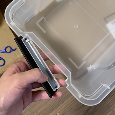 The storage bins are highly praised for their sturdy construction, ample space, and stackable design, making them ideal for organizing various items around the home. Guests appreciate the clear material that allows easy visibility of contents, as well as the secure locking lids that keep items safe. While some concerns were raised about handle durability, the overall consensus is that these bins are a practical solution for decluttering and organizing spaces effectively.