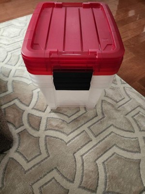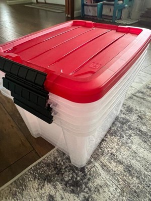 [This review was collected as part of a promotion.] These IRIS he was a 20 quart clear latch box stackable plastic storage bins with lids are perfect for any organization. They work perfect for towels, blankets, clothes, hats, shoes, or seasonal. I love how they are clear so we can see through without having to unstack them and open each one up. You can also label each boxpermanent marker what is in there on the front. They are durable and you can stack them in any closet under the bed depending how tall your bed is in the garage your basement.