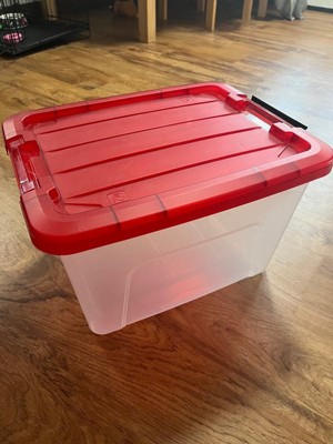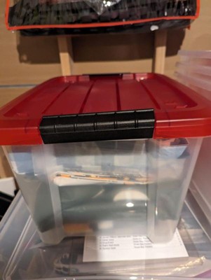 IRIS 19qt Stack and Pull Plastic Storage Bin: Clear Lidded Utility Tote with Built-In Handles & Latches