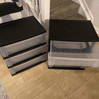 IRIS 2pk 3 Drawer Plastic Storage Chests: Black Polypropylene Organizer, Universal Storage, Floor Freestanding