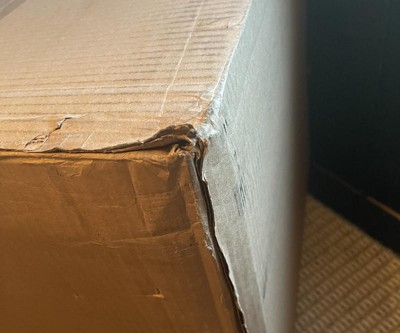 Broken corner on one side of tote