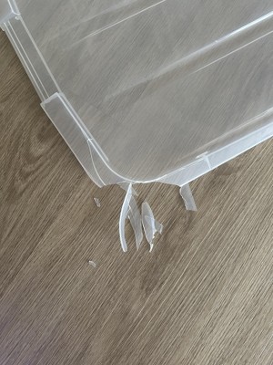 The box arrived pretty much open which isnt anyone's fault I guess, but my issue is with the plastic. It's very thin and fragile plastic, it's not sturdy like the hefty containers or bins. It's very delicate and shattered even from dropping not that high.