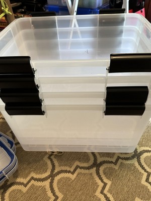 IRIS 44qt 4pk WeatherPro Plastic Storage Bin: Airtight, Lidded, Stackable, Transparent, Built-In Handles,