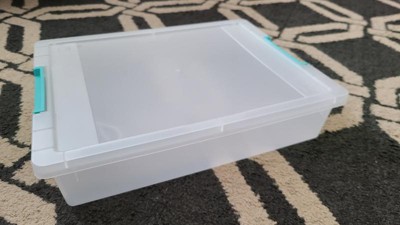 [This review was collected as part of a promotion.] I have a slite obsession with organizing. I run 2 businesses and organization is so important. I love these bins because the lid snaps on. This one is the perfect size for paper a d small crafts. The lid seems really sturdy.