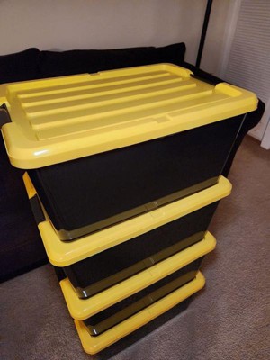 [This review was collected as part of a promotion.] These sturdy storage containers stack perfectly. They’re great for garage, basement, shed or in home storage! I love the locking handles and won’t buy storage containers without them anymore these are great! Highly recommend and would not hesitate to buy more.