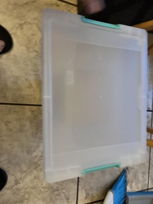 [This review was collected as part of a promotion.] I have a slite obsession with organizing. I run 2 businesses and organization is so important. I love these bins because the lid snaps on. This one is the perfect size for paper a d small crafts. The lid seems really sturdy.