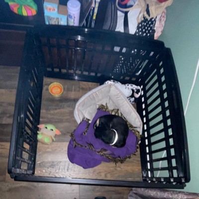 The playpen is a versatile and convenient solution for pet owners, offering easy assembly and portability. Guests appreciate its lightweight design, making it simple to set up and store. The secure door and customizable panel configuration enhance its functionality, making it suitable for various pets, including puppies and small animals. While some guests noted concerns about sturdiness for more active pets, many found it effective for keeping their pets safe and contained in a designated area.