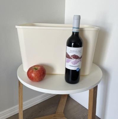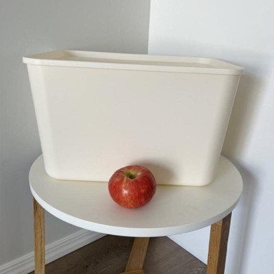 These are good but not amazing. The bins came packed very nice to not break them but one of the lids had some scuff marks. The scuff marks won’t come off when I tried to clean them. They are not as sturdy as I thought they would be, the bins will warp a bit on the sides so you can only fill it “just right”. Also the lids dip down so it cuts off some space at the top. I don’t like that the tops don’t click on very well and they come off very easily. The bins are visually appealing but definitely difficult to use for heavier items. So if you are storing light stuff I think it will work fine. I am storing towels and blankets and I don’t think it is the best solution but for now it works. I put an apple and a bottle of wine for reference on the size of the bins.