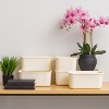 IRIS USA Modular Plastic Bins with lids is a perfect storage solution tool to organize your spaces at home, office, or dorm and so much more. With lids on top, you can stack them to maximize your space. Without lids, you can use them as storage baskets or drawer organizers in your drawers at the kitchen or bathroom. The design of clean lines and a modern look would be a great display on the shelf with your home décor.