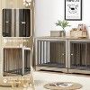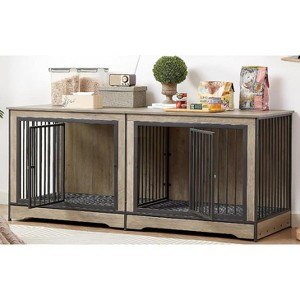 70'' Double Dog Crate Furniture for 2 Large Dogs, Heavy Duty Kennel End Table with Removable Divider & Hidden Trays, Indoor Dog Crate Cabinet