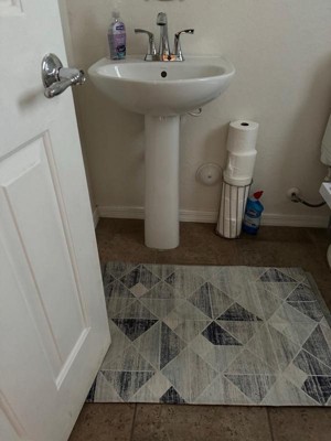 [This review was collected as part of a promotion.] I had originally planned on putting this rug in a bathroom, but miscalculated the measurements. It’s now has a home in the kitchen. I love the blend of blues and grays, and I’m now thinking of how I can change the accent and colors in the room. Love that it is washable, and the durability so far is excellent.