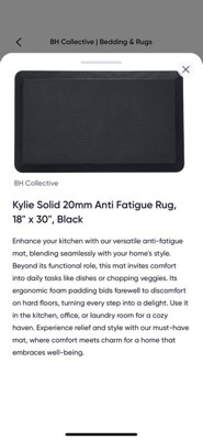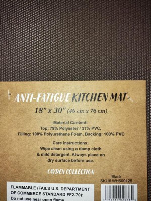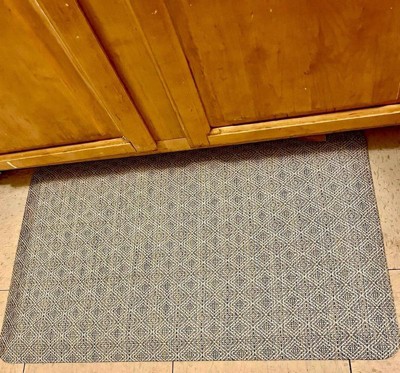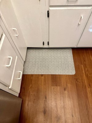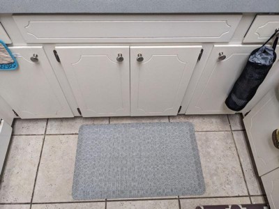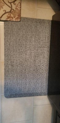 [This review was collected as part of a promotion.] I received this anti fatigue rug to try in return for my honest review. It was not my first pick for color, but nice rug. Fits perfectly in front of my sink. Comfortable to stand on, doesn't slide around. Easy to wipe off if something spills on it. Overall good rug.
