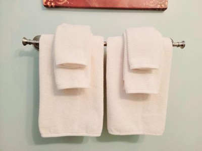 [This review was collected as part of a promotion.] I really like tris towel set! It’s a nice medium weight that’s substantial but not heavy, the textured pattern gives it an elevated design feel, and the color is a nice versatile off-white. It’s also nice and soft, and the wash cloths are a nice medium weight too — not see-through thin or inflexibly heavy. I’d definitely buy more!