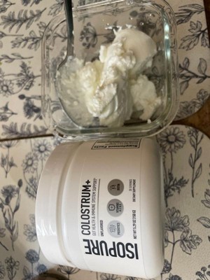 [This review was collected as part of a promotion.] Overall a well done colostrum supplement, no weird flavor and multiple ways to use it. I tried this out for multiple days before I decided to review and here are my thoughts. I know people who can dry scoop colostrum because they enjoy the taste of milk and often drink glasses of milk by itself. I am not one of those people, not only am I lactose intolerant but I do not enjoy the taste of milk alone. So for me mixing it with a liquid like water or milk wasn’t my jam, BUT mixing it into my yogurt bowl is! It blends seamless without altering any of the flavor of the yogurt itself or my mix ins. The texture blended well with my Greek yogurt and I haven’t experienced any sandy ness or gritty texture. I can not attest to the effectiveness yet as I think I need to use it up for me to be able to give any definitive answers on that but I do think it’s helped a bit with my bloating. Lastly the reason for the 4 stars is due to the lack of scoop, I’m not sure it this is supposed to come with one but I think a premeasured scoop is always beneficial because I feel like I can get too much or too little with a spoon. And because I find that with cold liquids it takes a long time to blend. You cannot blend it with hot liquids as well which sucks but I won’t knock any points for that.