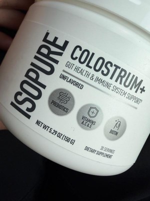 [This review was collected as part of a promotion.] I’ve only used the Isopure Colostrum+ twice so far, but I’m already noticing a small difference. It mixes pretty easily and the unflavored taste is actually truly unflavored, which I appreciate—no weird aftertaste. I bought it mainly for gut health and immune support, and while it’s still too early to say anything major, it hasn’t upset my stomach and feels gentle to take. The powder texture is a little clumpy if you don’t stir well, which is the only reason I’m giving it 4 stars instead of 5. But overall, it seems like a solid supplement, and I’m excited to see more results with consistent use!