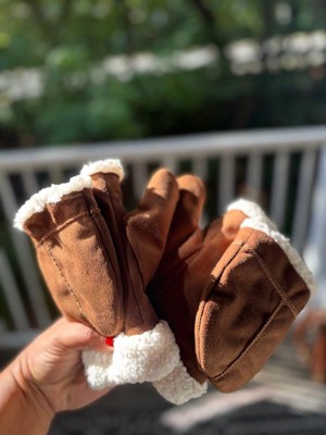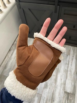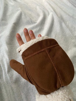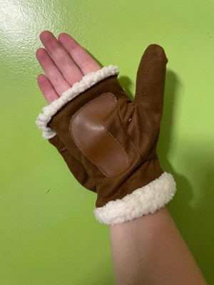 [This review was collected as part of a promotion.] These flip top mittens are so cute! They’re warm and super soft. I love the brown with the white lining. The mitten top part is a little bulky looking which is the only reason I’m subtracting a star but otherwise great mittens.