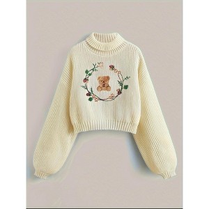This cozy turtleneck sweater combines warmth and style with intricate bear embroidery. Crafted from high-quality knitted fabric, it provides comfort and insulation for winter. The unique design adds a touch of charm to your cold-weather wardrobe, making it perfect for layering or wearing solo during chilly days. Available in various sizes.