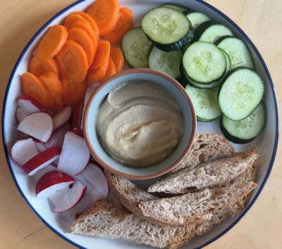 [This review was collected as part of a promotion.] I had this with sandwich for my dinner. It’s tasty and filling. The hummus isn’t sweet but is a little sour, in a good way. Also, the packaging makes it easy to store and use for next time. I would recommend.