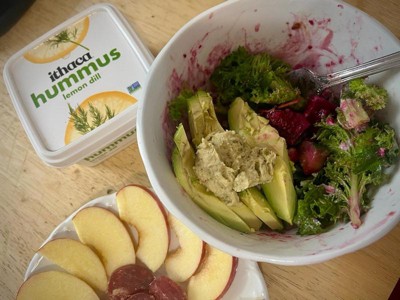 [This review was collected as part of a promotion.] I love the way this hummus elevates a simple salad or charcuterie board. The lemon dill hummus flavor is so unique - the tangy citrus is so bright while the dill plays nicely with the earthy chickpeas. It’s by far my favorite flavor.
