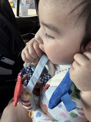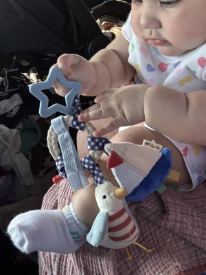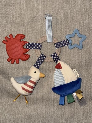 This nautical baby toy is perfect to attach to the car seat or stroller for on the go play time. Quality made product and so cute! The bany I gave this to loves it!