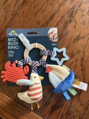 [This review was collected as part of a promotion.] We have been loving the nautical theme and this busy ring doesn’t disappoint! My teething son loves all the different textures and sounds the ring has. Sometimes he loves a more firm bite, while other times he really goes for the plushie. This ring has it all! I also love its Velcro loop so that it can be fastened to a variety of our things!
