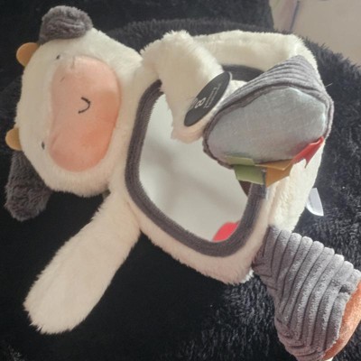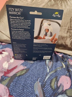 Make way for Carmen the Cow! This Itzy Bitzy mirror is so cute and soft. I absolutely love that you can hang the mirror toy on a carseat or stroller with ease. The 8 sensory features are a definite plus. This toy definitely keeps my 3 month old entertained.