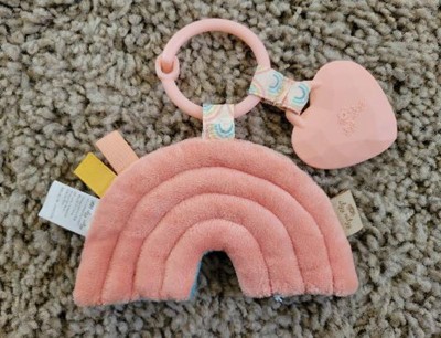 My baby loves this. Has a teether attached and the rainbow part crinkles. So cute!